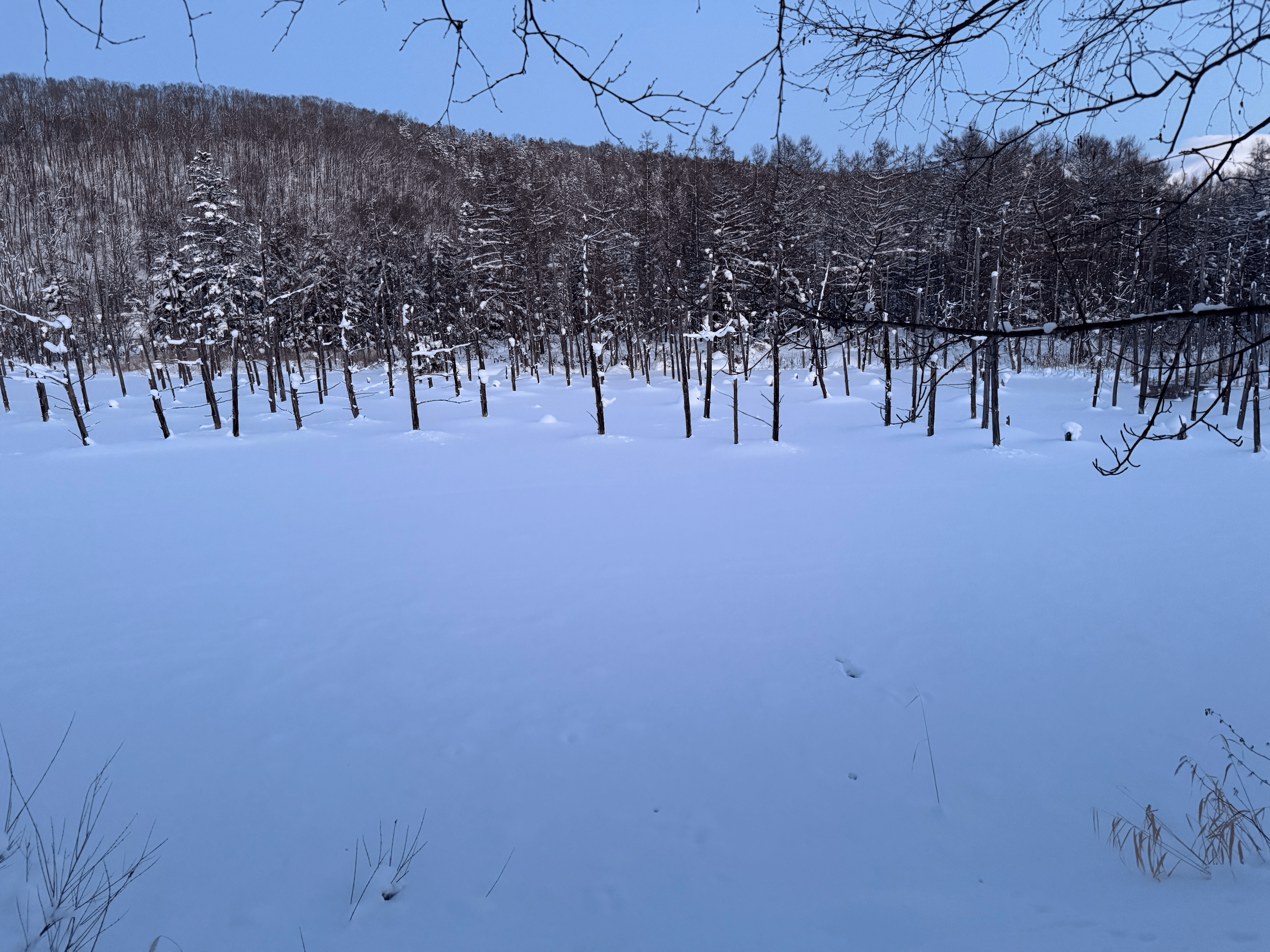 청의 호수까지는 30분가량 소요됩니다. 버스에서 내리니 벌써 날이 어두워져갑니다. 여기에서 허락된 시간은 30분 정도밖에 되지 않습니다. 비에이역 방면으로 운행하는 버스가 약 30분 후에 도착하기 때문입니다.