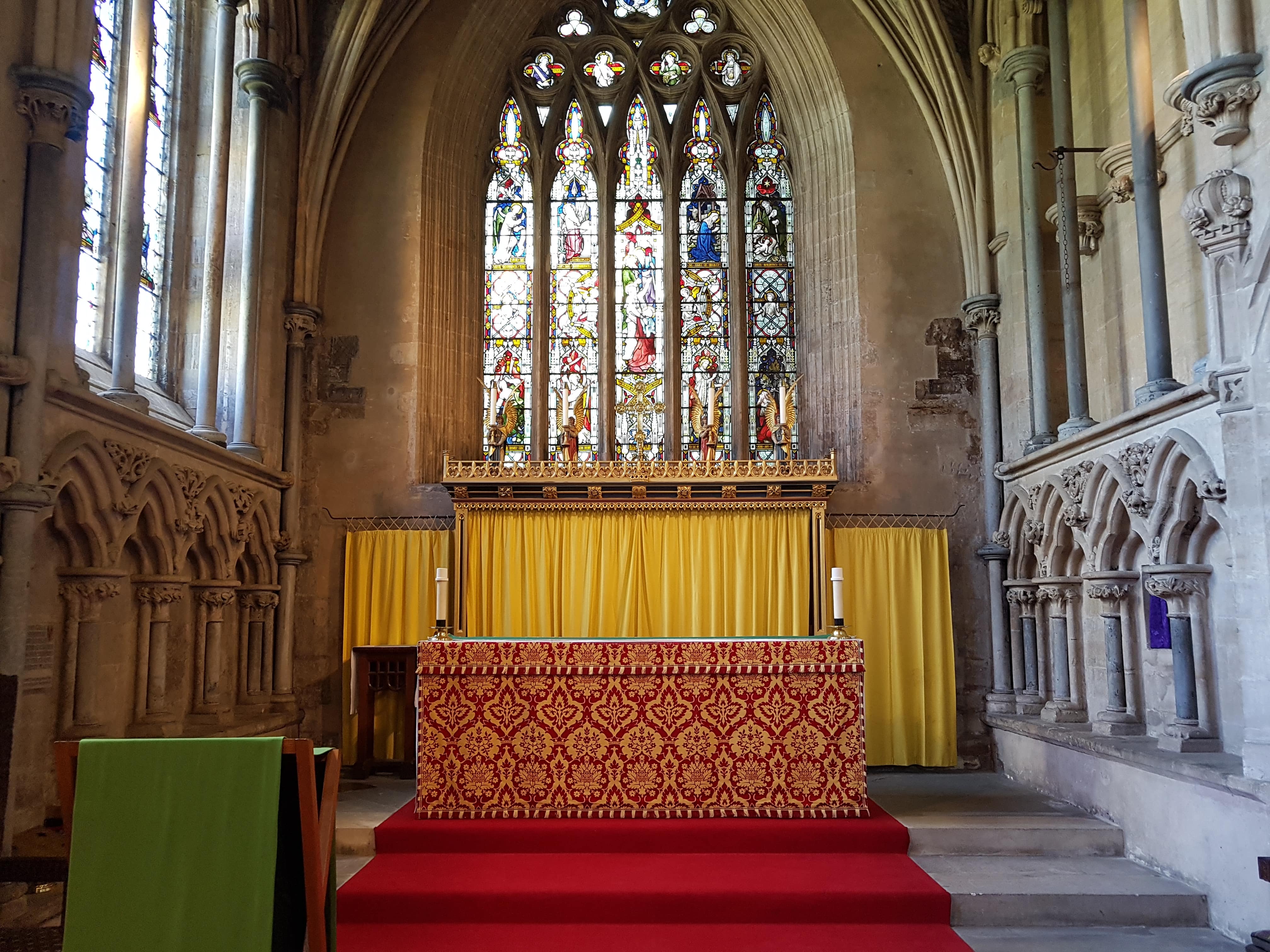 대제단 뒤편에 있는 정교하게 조각된 레레도스(reredos)는 빅토리아(Victoria) 시대의 복원 과정에서 크게 바뀌었다고 합니다. 예언자, 사도, 성인으로 가득 차 있으며, 테 데움(Te Deum)을 묘사하고 있습니다.