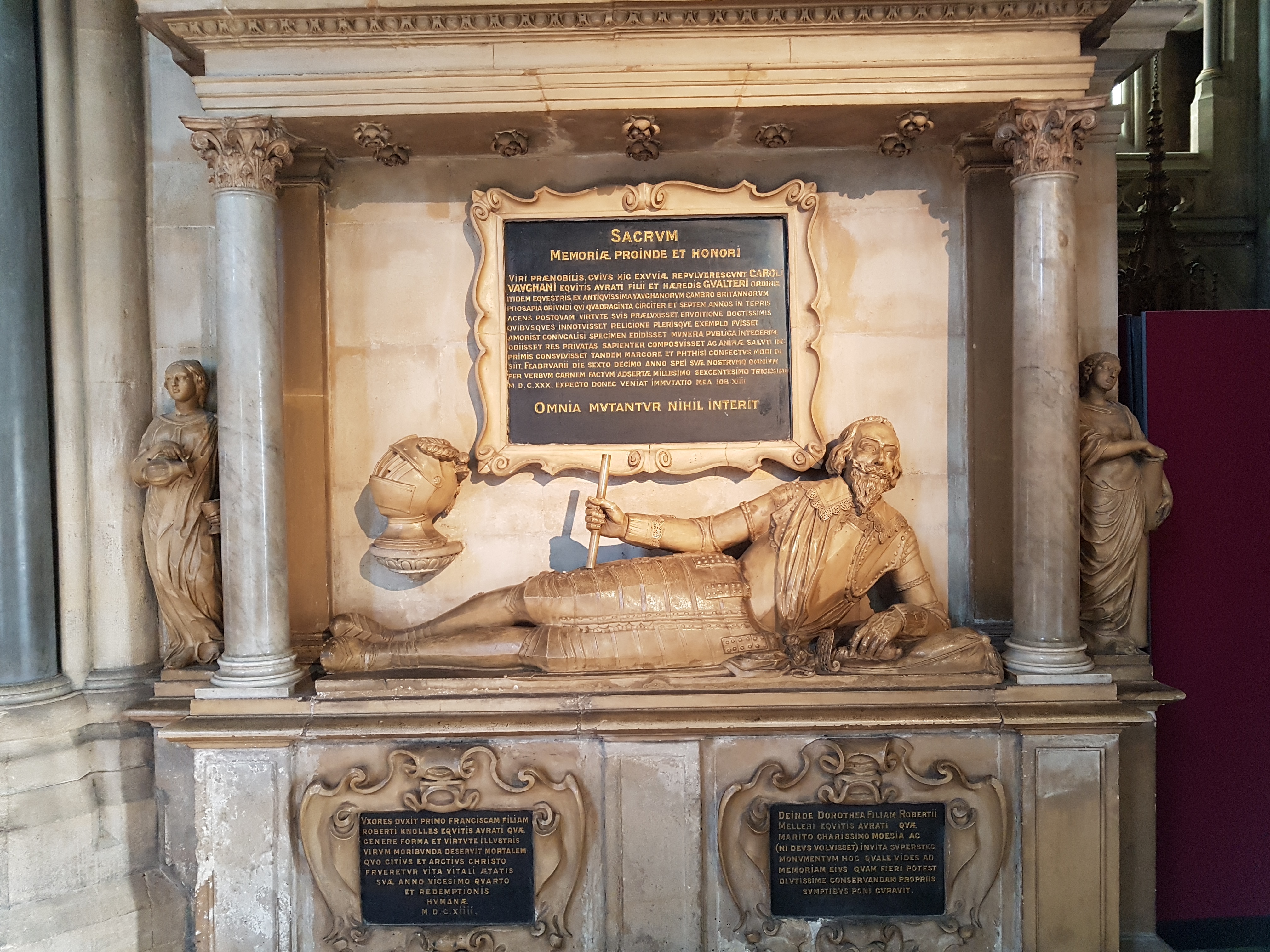 위 사진은 찰스 본 경(Sir Charles Vaughan)의 묘비입니다. 그는 웨일스의 정치인이었고, 브리스톨에서 세상을 떠났습니다. 그의 2번째 아내가 그를 기리기 위해 브리스톨 대성당에 묘비를 세웠다고 합니다.