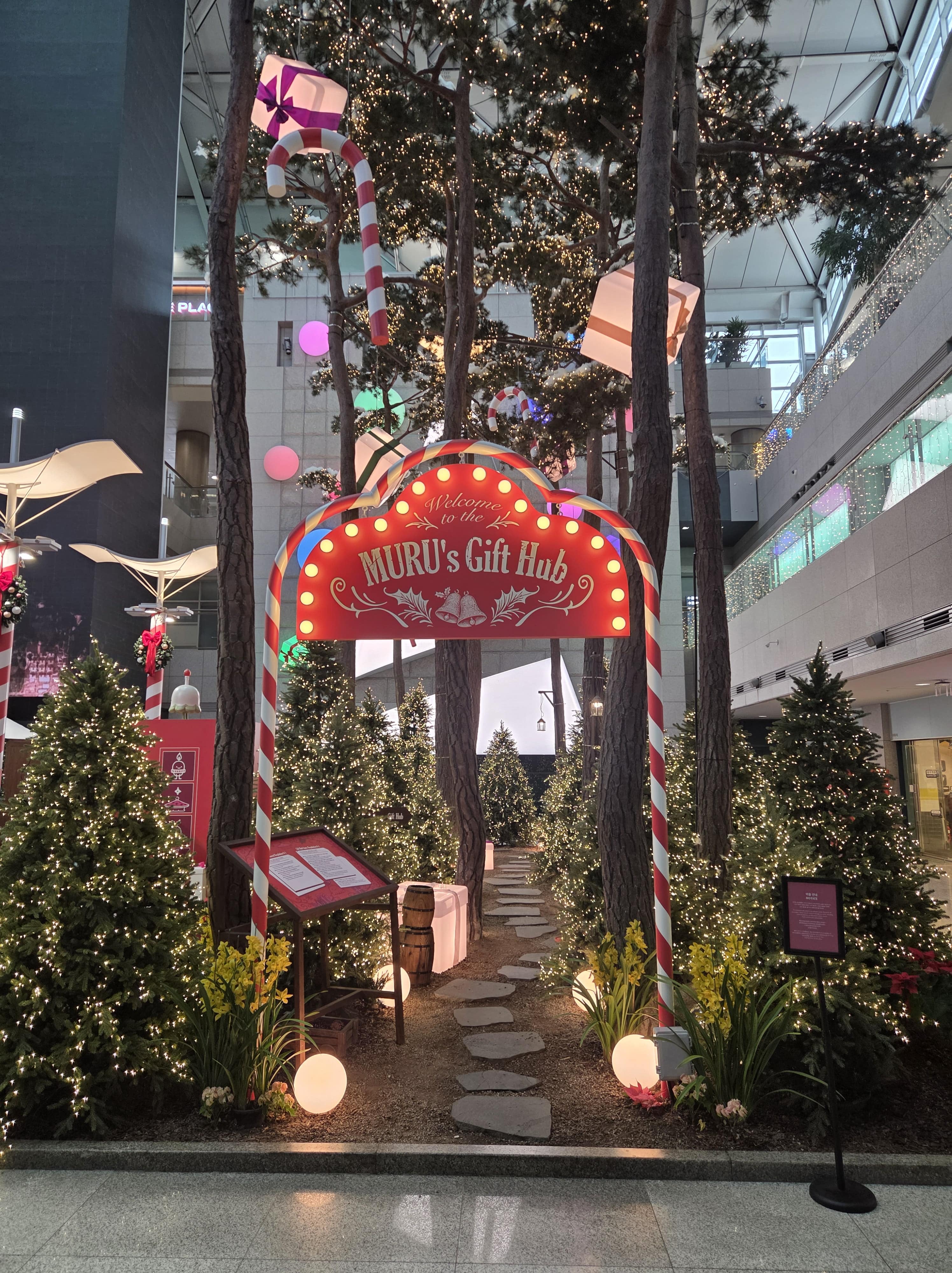 인천공항 제1터미널 1층에는 크리스마스 전후인지라 무루의 기프트 허브라는 예쁜 포토존이 있습니다. 대형 LED 스크린과 반짝이는 트리가 있어 눈에 확 띕니다. 사진 찍는 외국인들을 쉽게 볼 수 있었습니다.