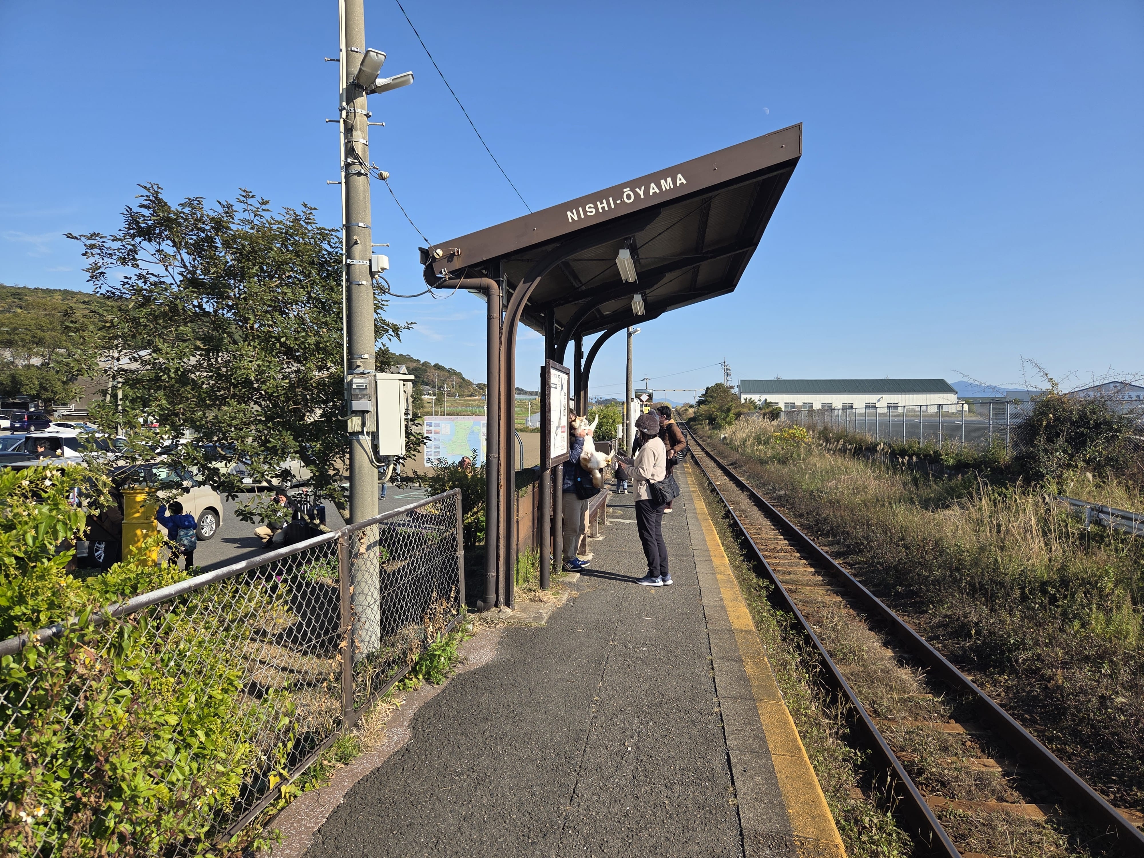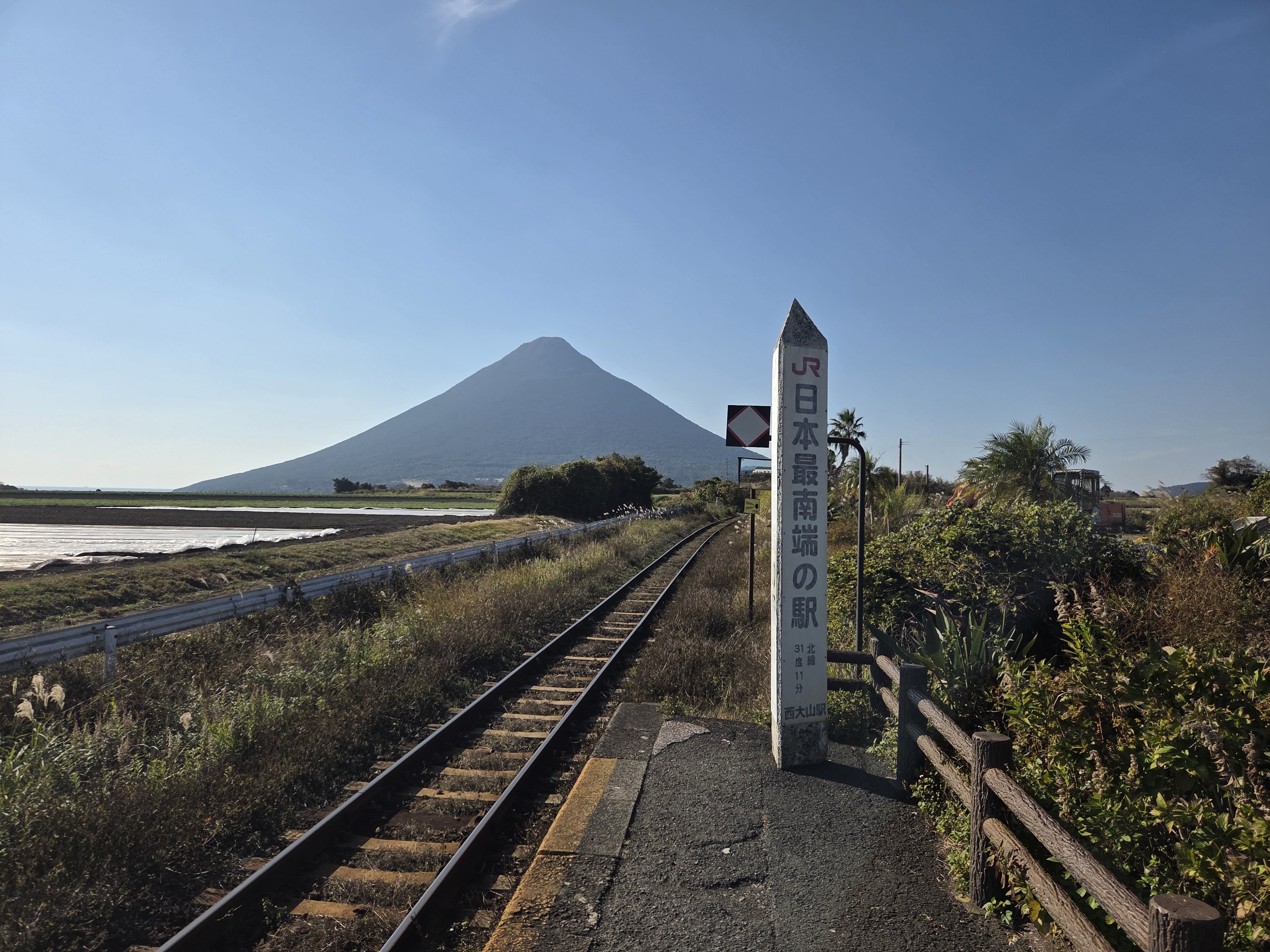 서둘러 점심을 먹고 이부스키역에서 열차를 타고 도착한 곳은 니시오야마(西大山)역. 이곳은 JR 최남단역이라는 타이틀을 가지고 있습니다. 최남단역이라는 상징성 때문에 포토타임을 제공하는데, 그렇지 않은 경우도 있는 것 같습니다.
