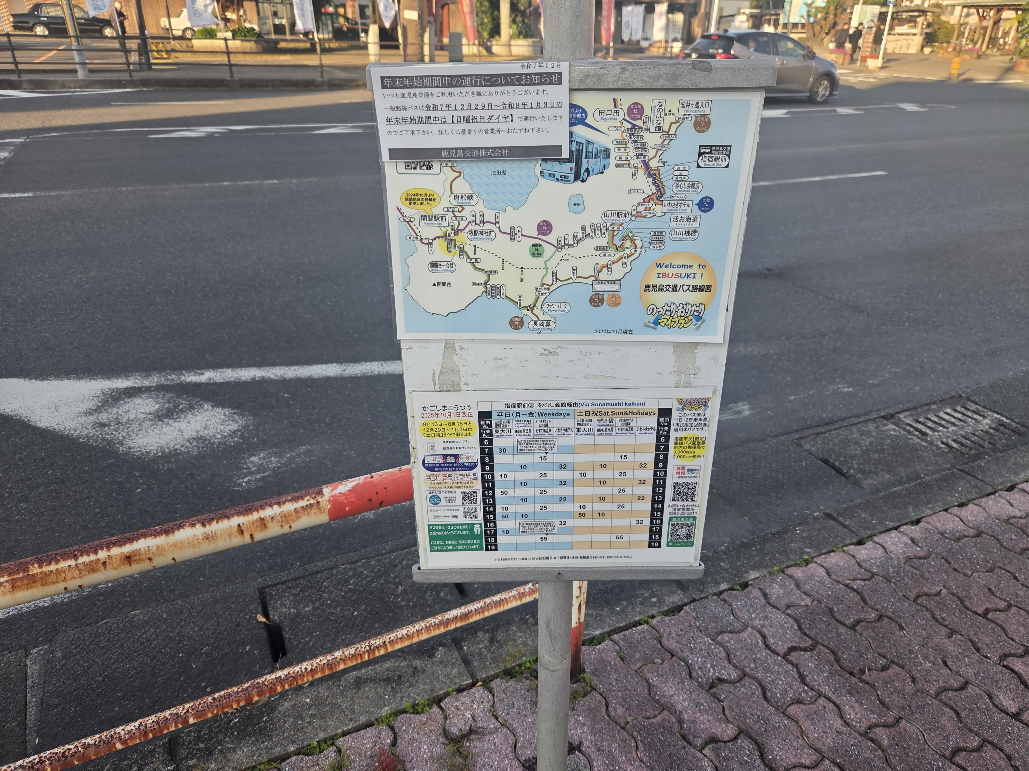 제가 새벽부터 서둘렀던 이유는 아침 8시 15분에 도착하는 타마테바코(たまて箱) 온천행 버스 첫차를 타기 위해서입니다. 타마테바코 온천행 버스를 타는 곳은 이부스키역 건너편에 있는 가고시마 교통 이부스키 영업소 앞입니다.