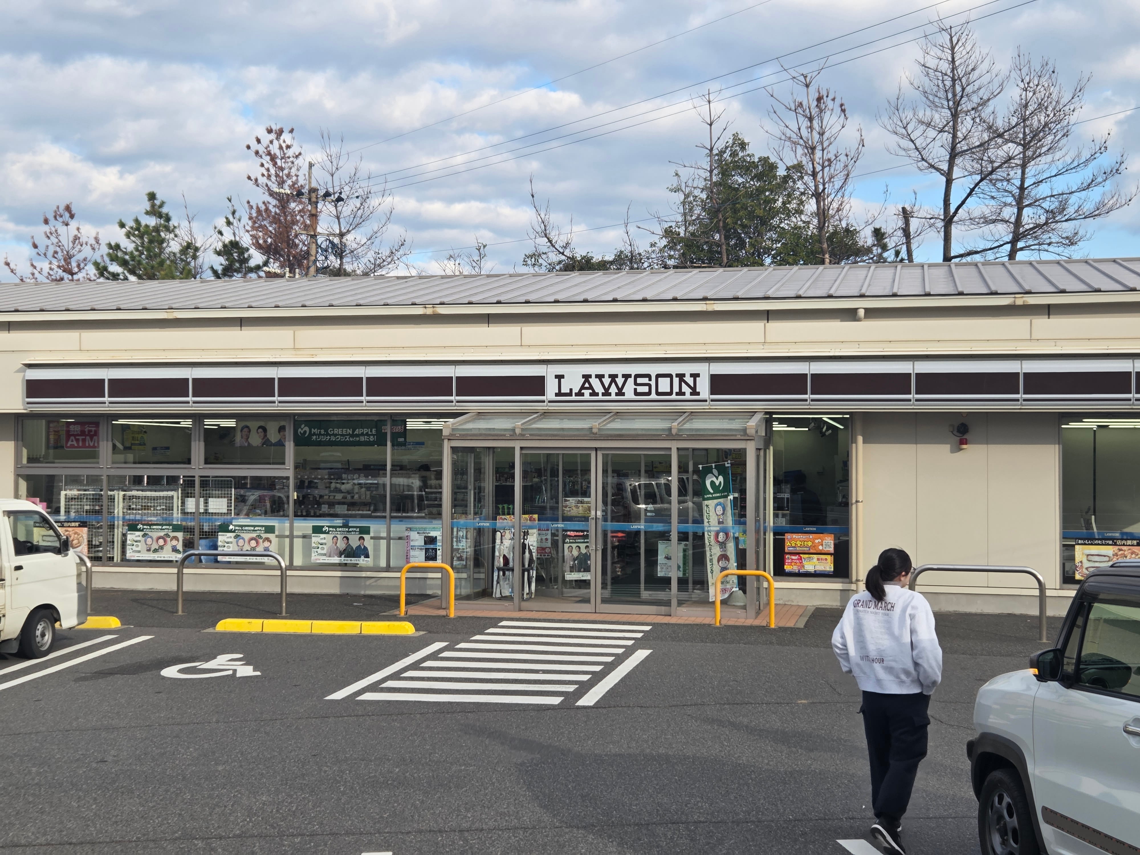 사쿠라지마에 도착한 시간은 8시 55분인데, 사쿠라지마 아일랜드 뷰 버스는 첫차가 9시 30분이기 때문에 사쿠라지마 비지터 센터까지 걸어가기로 합니다. 걸어가다 보면 화산섬이라는 특성을 반영한 잿빛의 로손 간판이 보입니다.