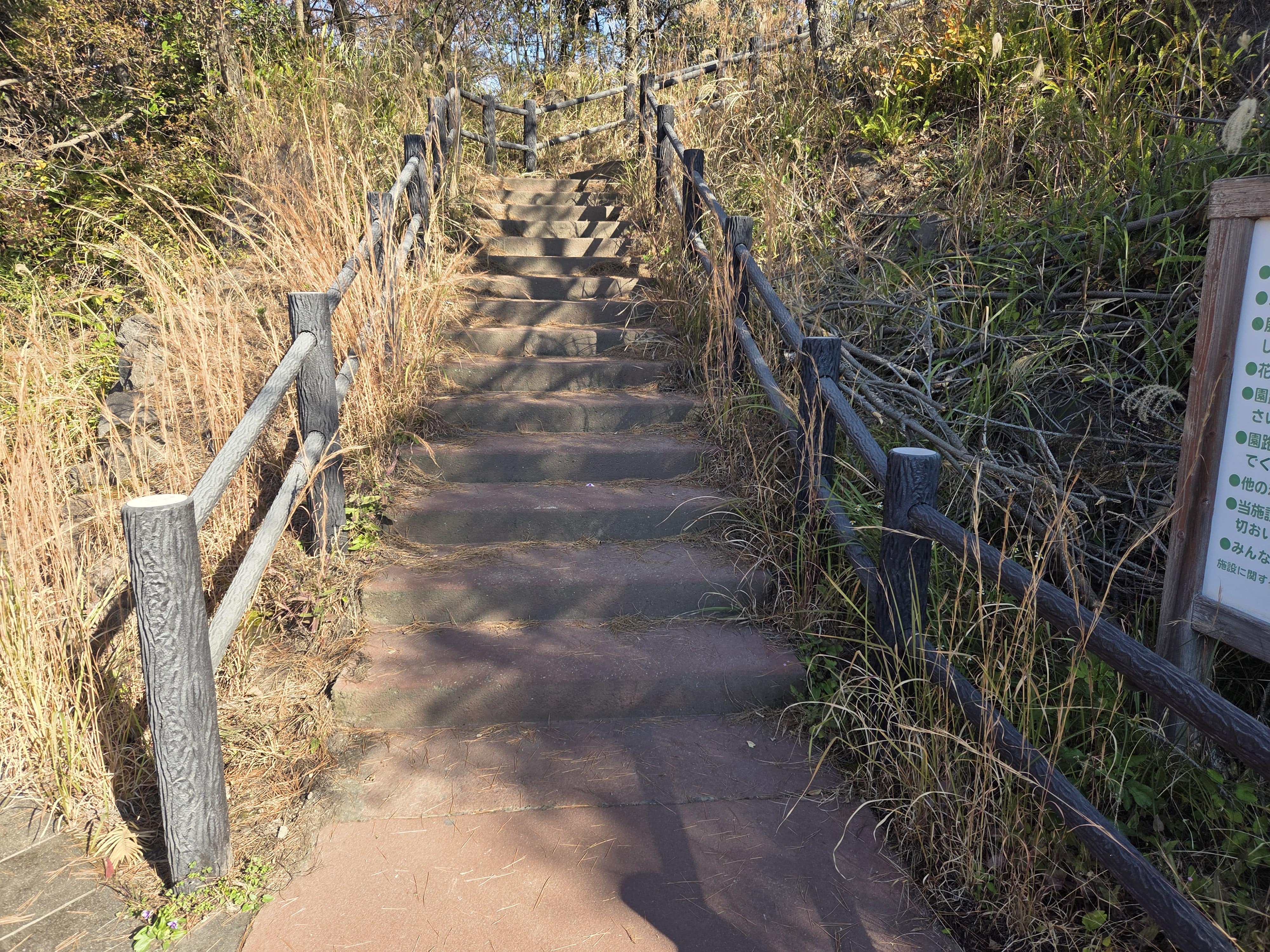 아카미즈 텐보히로바(赤水展望広場)로 가는 도중에는 하천을 건너는 다리가 있습니다. 히키노히라카와(引ノ平川)라고 쓰여있지만, 물이 흐르는 강이 아니라 분화 시 용암을 흘려보내는 방재 시설이라고 합니다.