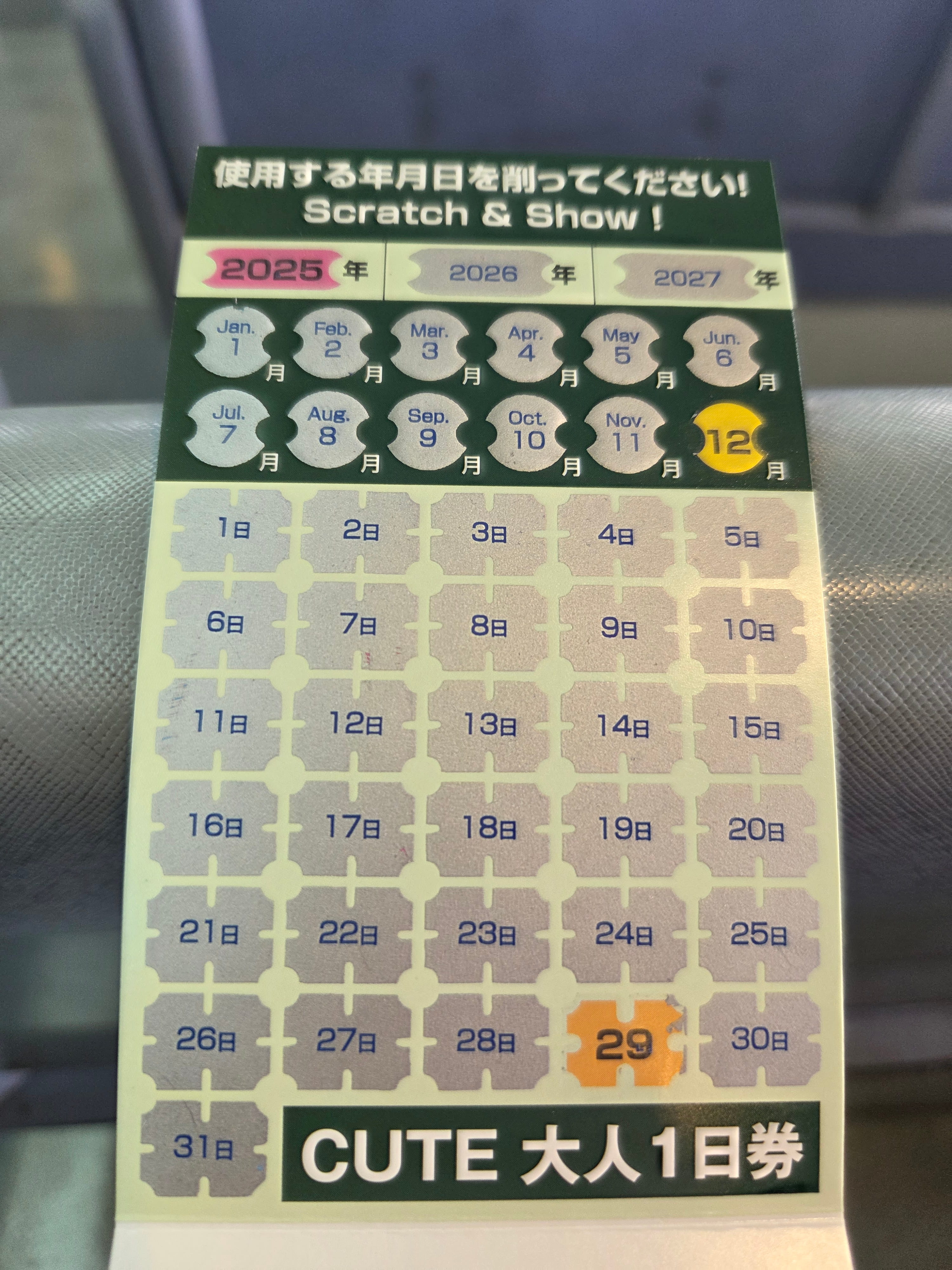 이날은 가고시마츄오역 인포메이션에서 미리 구매했던 큐트 패스 1일권을 사용하였습니다. 큐트 패스를 사용하면 시티뷰 버스, 트램, 사쿠라지마 페리, 사쿠라지마 아일랜드 뷰 버스 등을 무제한으로 탈 수 있고, 일부 관광지의 입장료 할인 혜택도 받을 수 있습니다. 사용할 날짜를 직접 긁어서 사용하면 됩니다. 동선을 잘 짜면 뽕 뽑기는 어렵지 않습니다.
