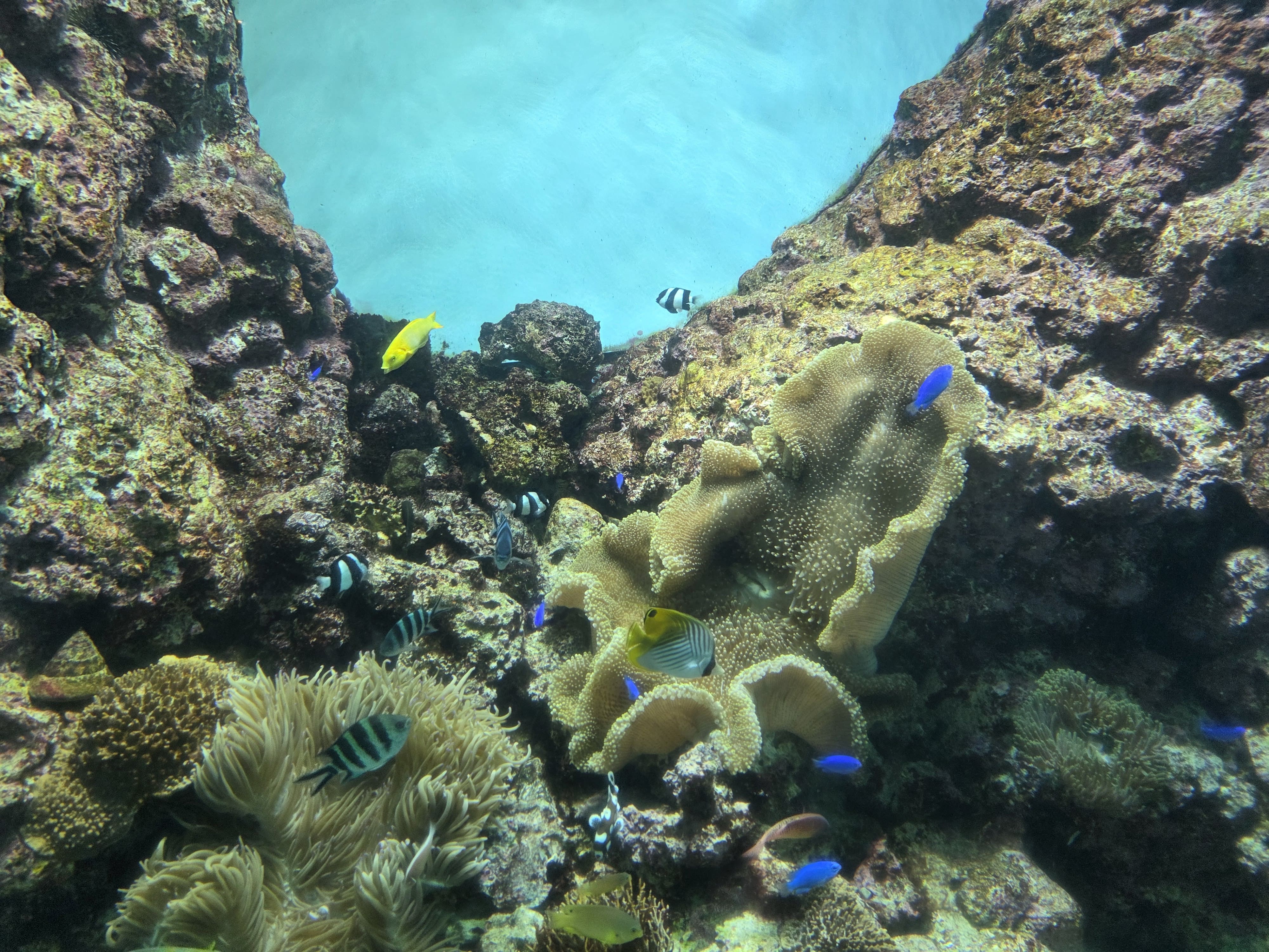 가고시마 수족관의 쿠로시오(黒潮) 대수조와 산호초 수조의 모습을 담아봅니다. 참고로, 시간을 잘 맞추면 돌고래 퍼포먼스를 추가 요금 없이 볼 수 있습니다. 가고시마 수족관을 대충 다 둘러보았으니 가고시마 성으로 가기로 합니다.