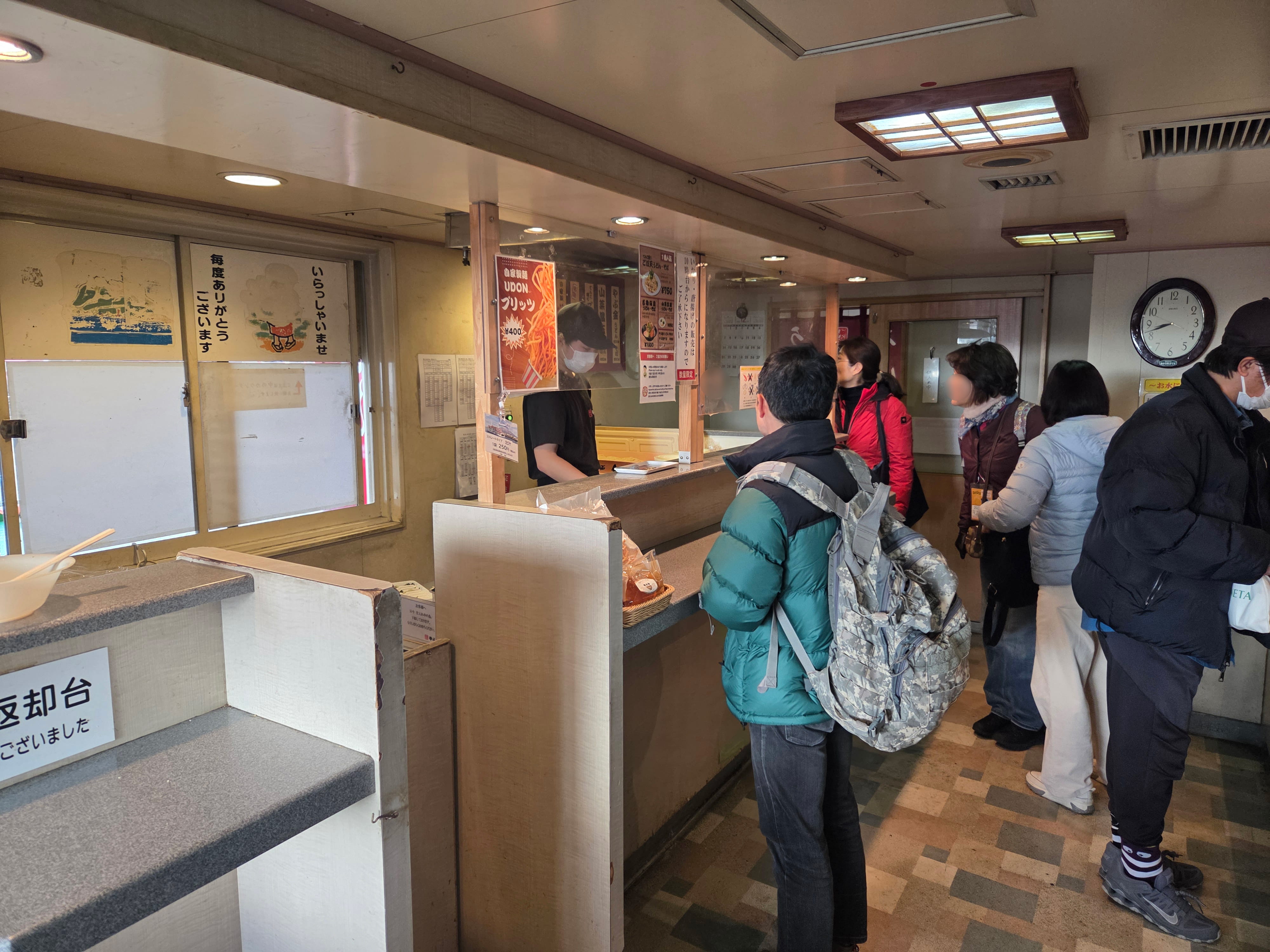 사쿠라지마 페리 안에는 우동 가게가 있습니다. 사쿠라지마는 시내에서 페리로 대략 15분 거리에 위치해 있기 때문에 페리의 출항 시간에 맞추어 우동을 주문했습니다. 참고로, 결제는 현금만 가능합니다.